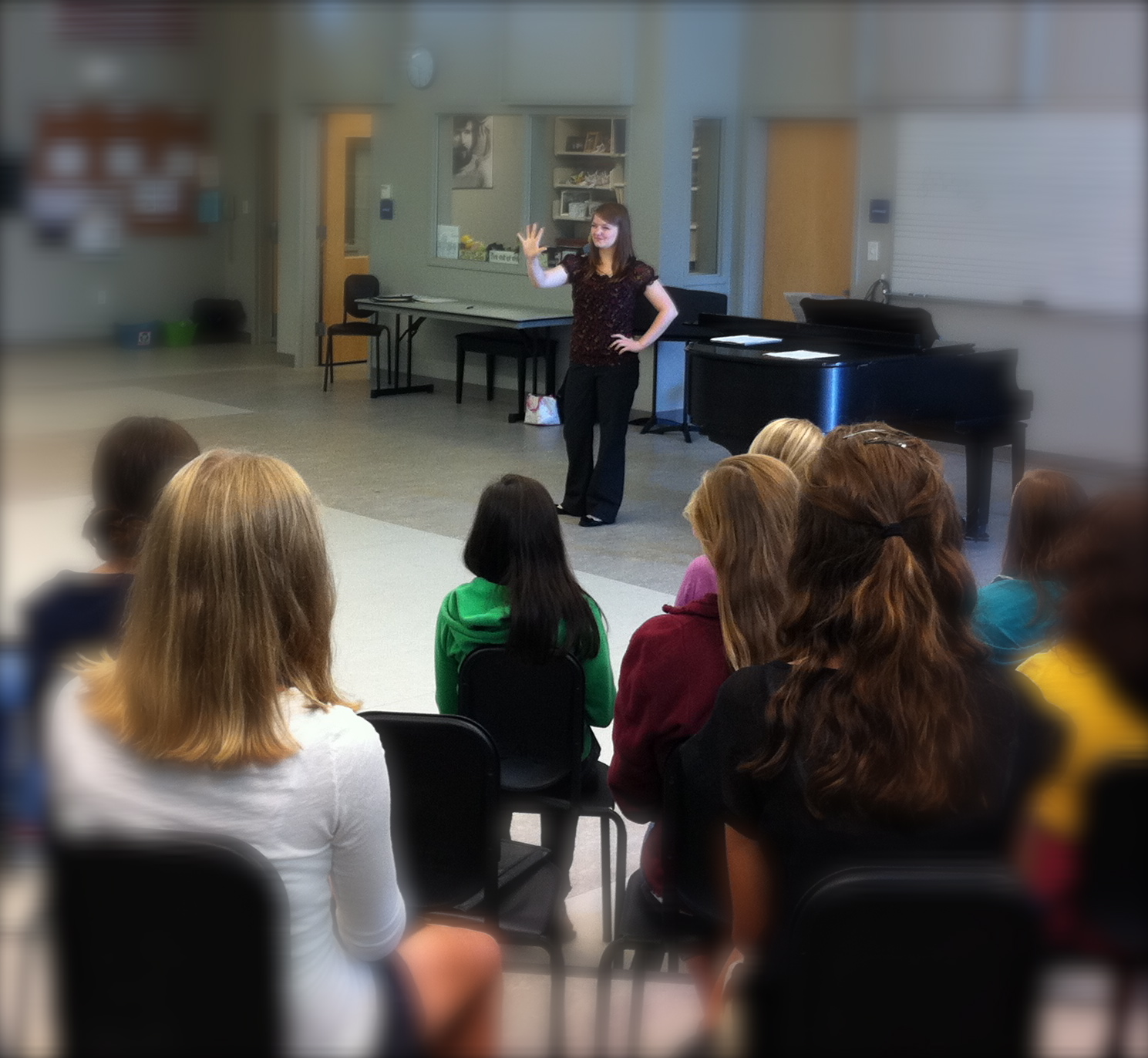 Develop any exercise that requires them to hold a chord in tune by moving it up and down. My “no, neh, noo, nuee, naw” exercise has that component to it and the trick to mastering the half steps is to request it visually and to do it quickly. Any discrepancies in half steps will become very evident. But that’s with a triadic chord. Once that can be done successfully, I’ve sometimes gone to having them sing a major 7th chord (B=1, T=5, A=3, S=7) and then move up and down by half steps. Getting them to hold the chord in tune is a challenge but an achievable one. Another next step is to have them sing those 4 numbers (or any random set) and then yell, “plus 1” and see if they can actually move the chord and stay in tune! Do “minus 2” and see if they can still hold it. I would argue – and so would you – that a choir that successfully moves from a CM7 chord to an Em7 chord, just by hearing how their note fits into it has well trained ears. And I have a strong conviction that talent has very little to do with it.
